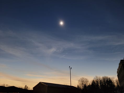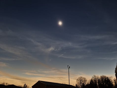 We were standing near lots of folks who brought their dogs to the viewing, and as the Sun dimmed, they (the dogs) all started whimpering or freaking out. I’ve also heard people mention nighttime creatures coming out, although didn’t see it myself.The emotions: